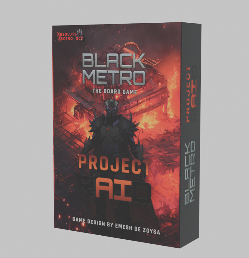 Absolute Ascendancy is proud to announce Project RAID, the first expansion for Black Metro: The Board Game! This expansion features two advanced game modes – AI and RAID – both of which allow players to challenge the overlord of Black Metro!