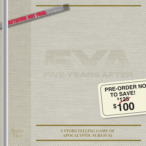 Five Years After is in final production and layout to turn the game into a beautiful cloth-backed hardcover that stands out on any shelf. Only 500 physical copies of the game will be manufactured and it will not be crowdfunded. Pre-order now to save $25 on your copy.
