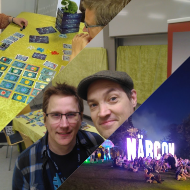 At all of these we met not only board gamers but also board-game designers like ourselves. At LinCon the finals for the Swedish Annual Game design Awards were taking place, at NärCon we met the designers of the very cool game “300 Gnomes in a Trench Coat” and at MimiCon we met Bärsärk Games designers of the the small but neat “Romeo and Juliet” Game.