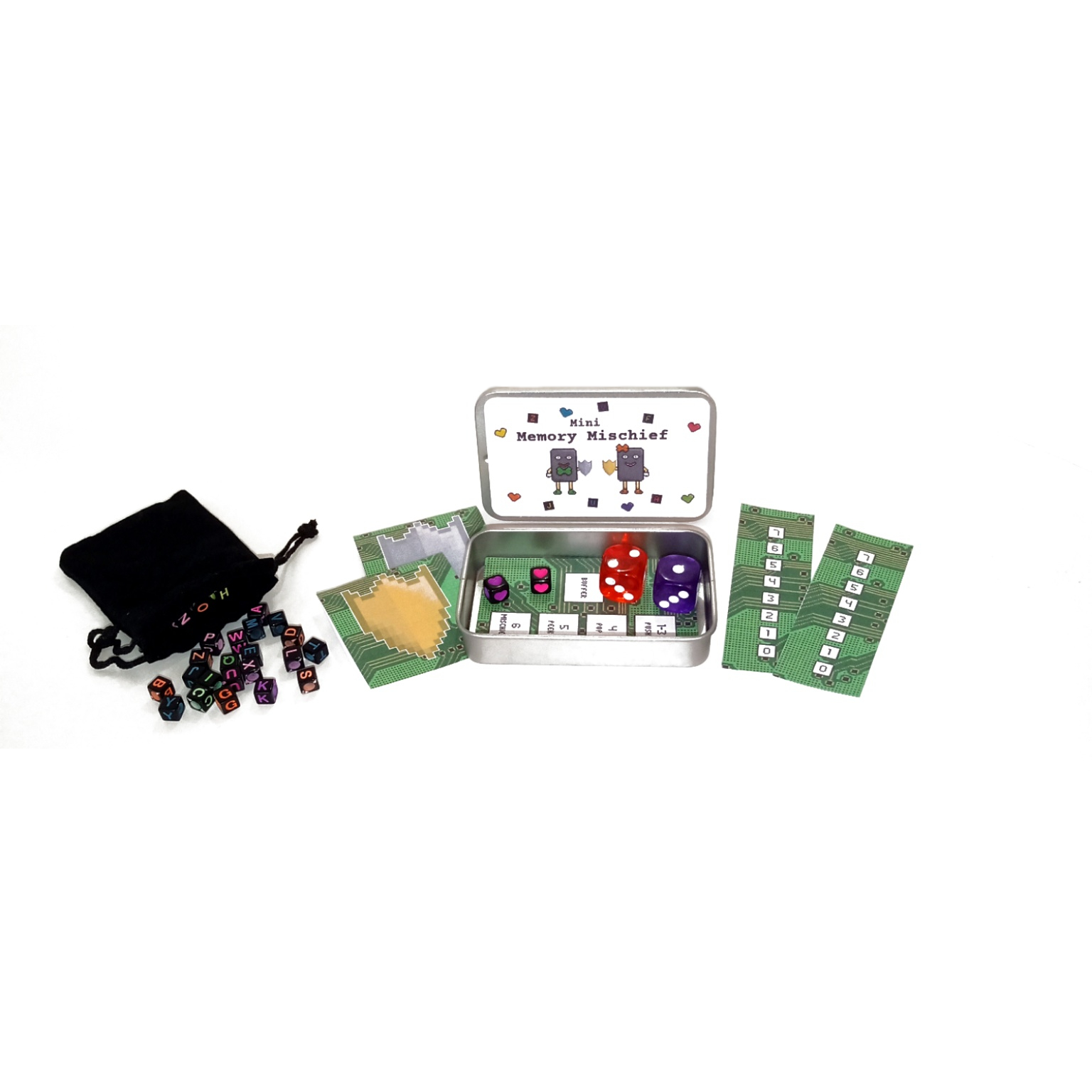 In a standard game of Mini Memory Mischief, the dice and heart action token colours will be a random selection. With this custom version you can choose which colours the two dice and two action tokens will be.