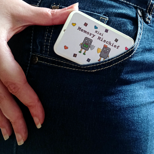 This game is not strictly a ‘memory game’ – memory is the theme of the game as it is played on Mikro and Chip’s internal memory stacks. The game includes dice for luck, player choices using your heart action tokens for strategy, and despite not being a specific memory game does have mechanics that test your own memory (not just the digital kind) and cute little components that fit well in their tiny mint tin home. You can take the game with you as it fits nice and neatly in your pocket.