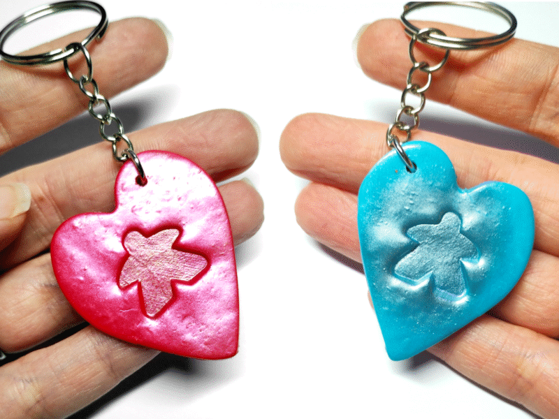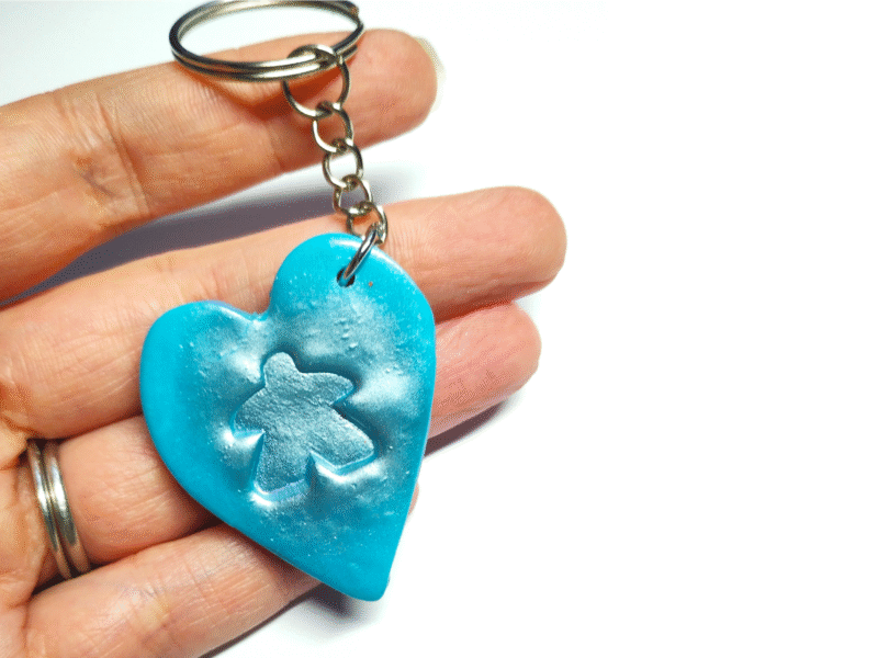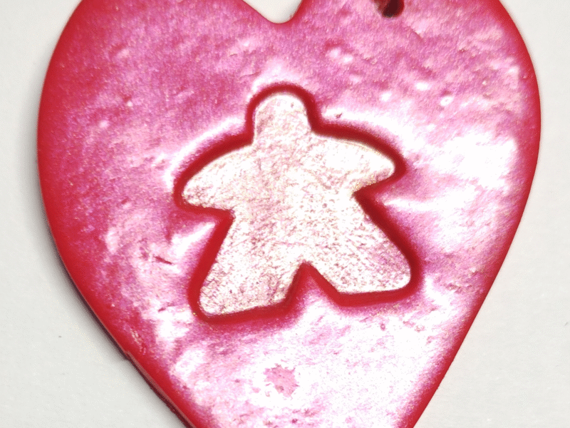 Valentine’s heart meeple keyring, adorable board gamer gift, perfect for Valentine’s Day.